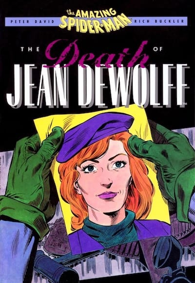 Three plausible Spider-Man storyline contenders: Kraven's Last Hunt, The Death of Jean DeWolff, and Spider-Man: Reign. Art and characters (c) Marvel.